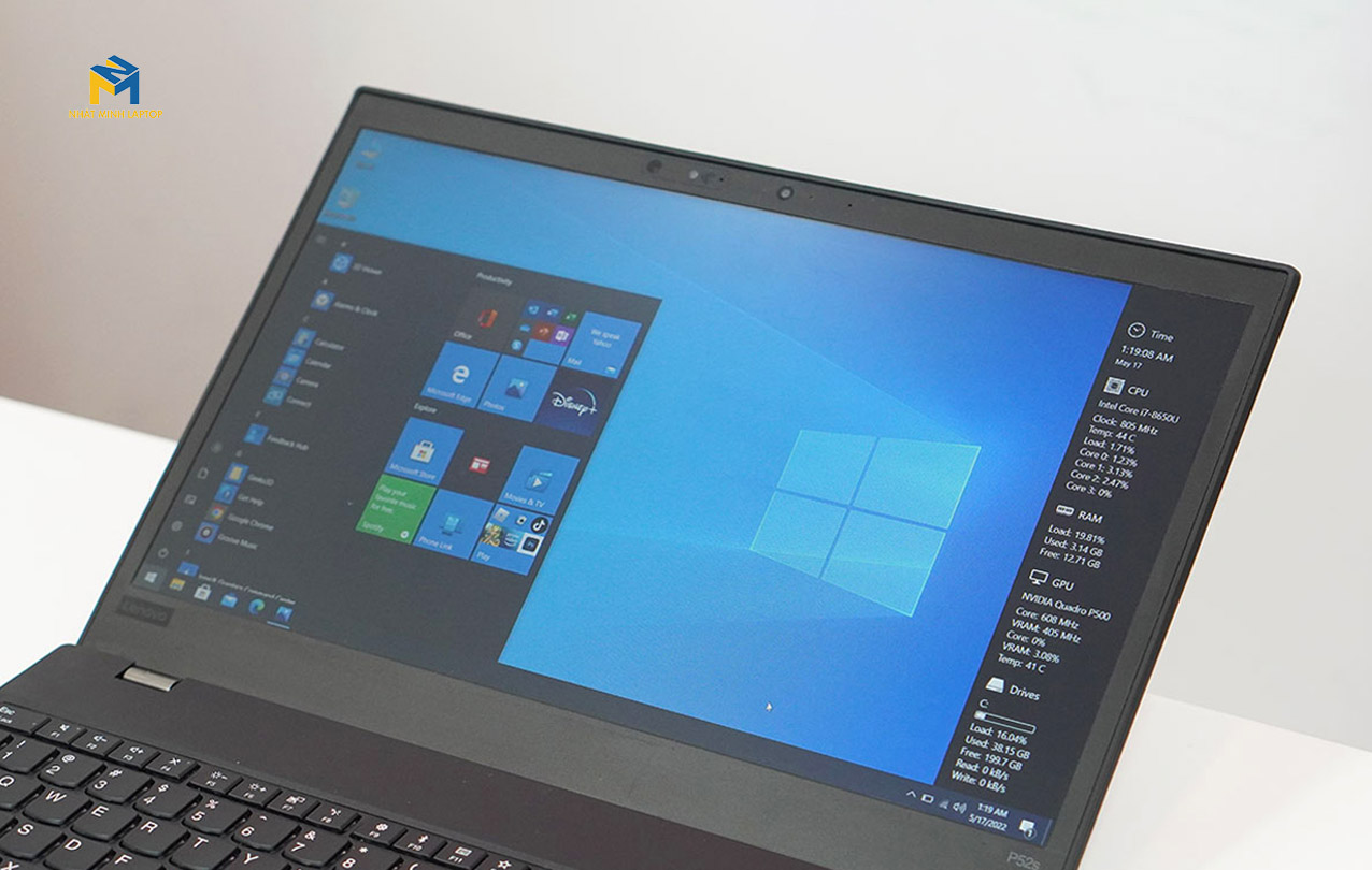 Cấu hình Lenovo ThinkPad P52s với bộ vi xử lý Core i5-8350U được trang bị bộ vi xử lý thế hệ thứ 8, RAM 8GB, SSD 256GB, Card đồ họa Nvidia Quadro P500 (2GB). Cho hiệu năng hoạt động tuyệt vời. Mọi tác vụ Laptop đều được hoạt động mượt mà, hầu như không có hiện tượng chậm trễ khi chuyển đổi qua lại trên 30 tab Google Chrome.